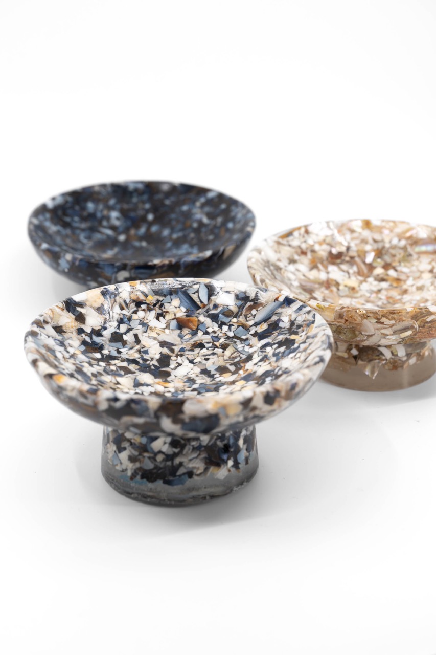 Chaque pièce est unique ! Elle est composée avec un minimum de 60% de coquilles revalorisées provenant du Finistère Nord. Fabriquée à la main dans la Baie de Morlaix.