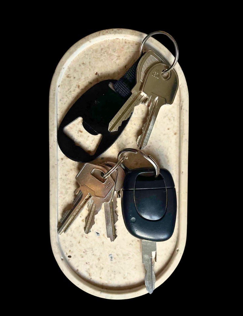 Un vide poche composé à 80% de volants de badminton recyclés et fabriqué en France.